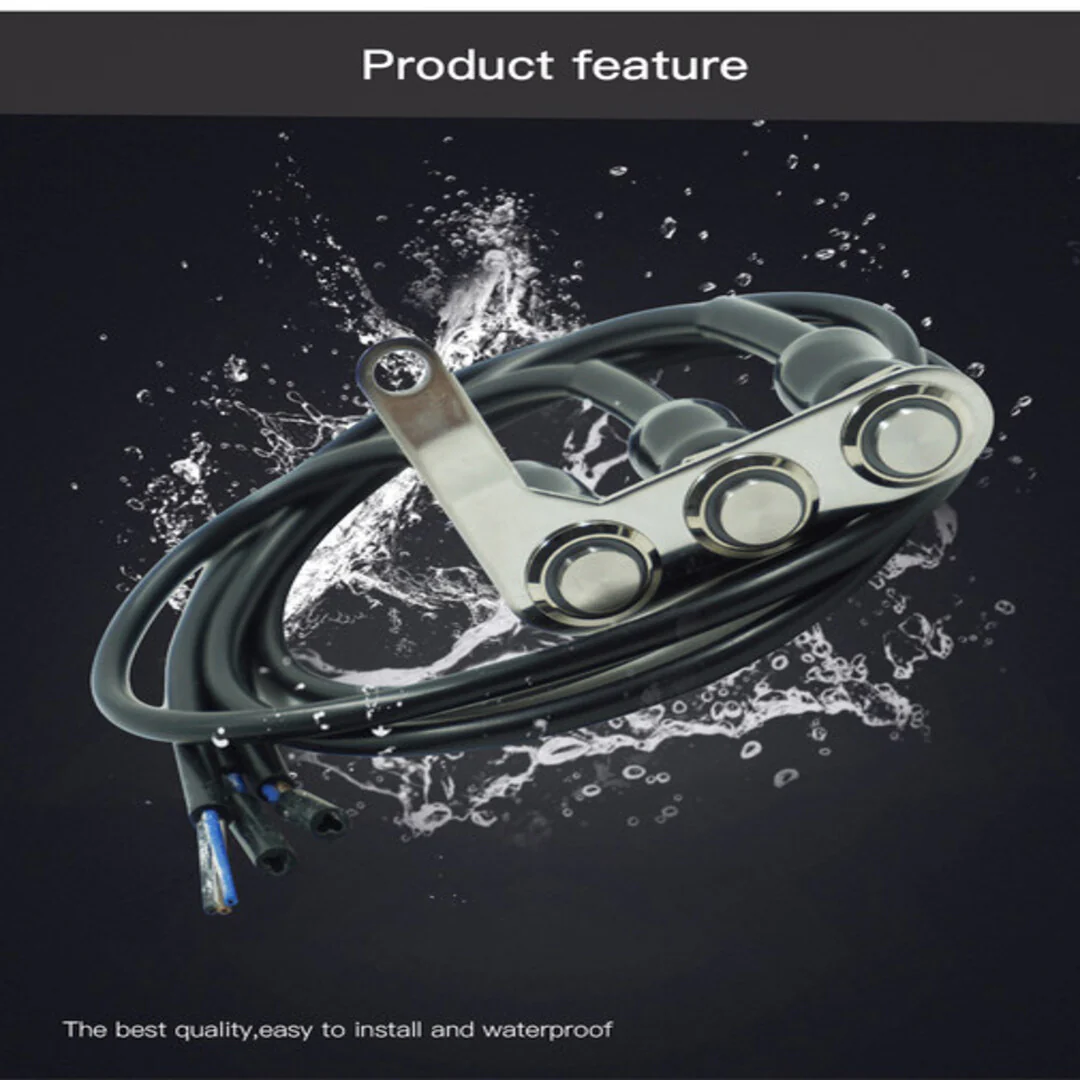 12V Motorcycle Switch 3 Button in 1 Stainless Steel Switches Hazard Light Headlight LED Bike Motorcycle